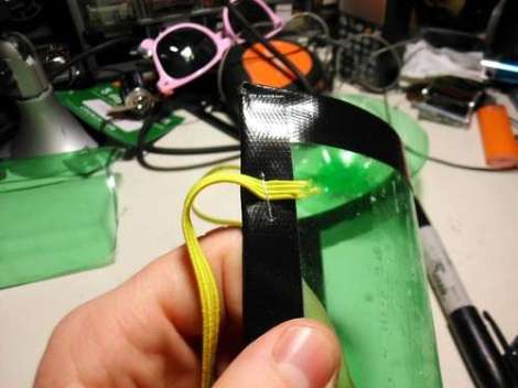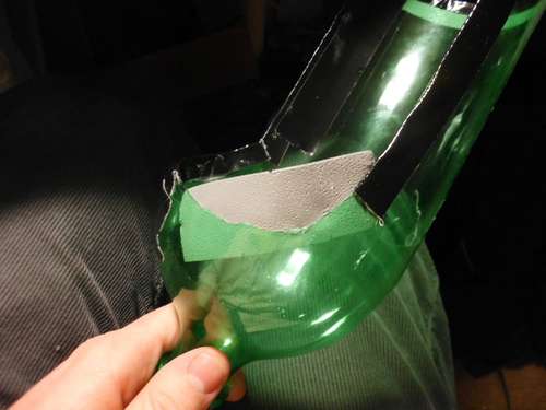 Para que esto funcione, usted tiene que crear un sello en la cara con la botella. He creado este sello con un poco de cinta aislante alrededor de los bordes de la botella.