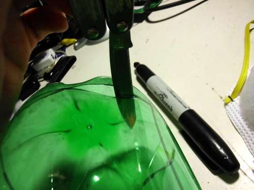 El primer paso es marcar la botella y cortarla.