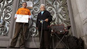 Sujeto por las cadenas de hierro, ha explicado el caso de su madre, provocado por una reunificación de deuda sobre la casa de su hermano que ascendía a 110.000 euros y al que avaló la anciana ofreciendo su propia vivienda. La empresa hizo firmar a su hermano dos letras, una de 30.000 y otra de 80.000 euros, que se suponían que iban a quedar refinanciadas.