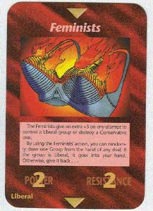Las Feministas dan un extra de +3 un cualquier intento de control de un Grupo Liberal o destruir a uno Conservador.