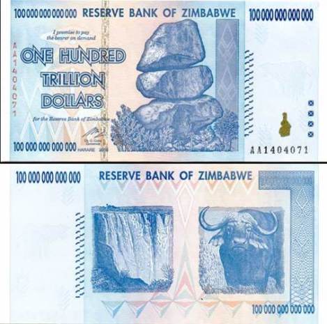 Aunque sea un billete de 100 trillones como el de abajo, su valor llega a ser cero.