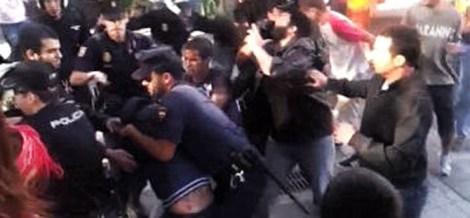 En el vídeo que reproducimos a continuación, recogido a través de un teléfono móvil, se puede apreciar el uso indiscriminado e injustificado de la violencia por parte de los agentes y cómo continúan golpeando a alguno de los manifestantes incluso después de haberlo reducido por completo.