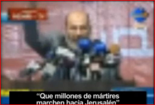 Safwat Higazi: Nuestra capital no debe ser El Cairo, La Meca o Medina. Será Jerusalén, Alá que lega. Nuestra convocatoria es: «Millones de mártires marchando hacia Jerusalén Millones de mártires marchando a Jerusalén.».