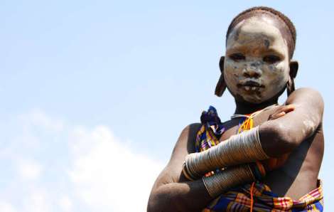 Niño suri del valle del Bajo Omo, en Etiopía. Los violentos robos de tierras están devastando a su tribu.