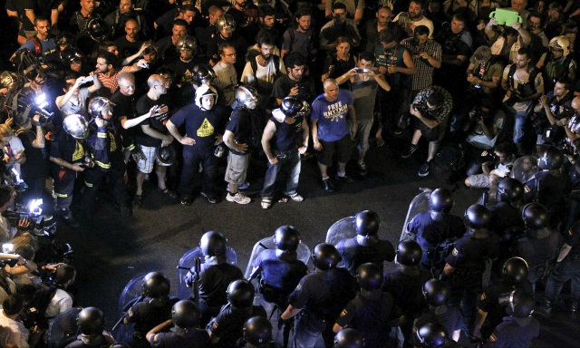 La multitudinaria protesta de la capital empezó sin incidentes violentos. Pero pasada la medianoche empezaron los enfrentamientos entre grupos de manifestantes y policías, con disparos de salvas, contenedores quemados y una pugna infructuosa de la marcha por acercarse al Congreso. La Cámara baja estaba protegida por unos 120 policías, que les bloquearon el paso. Los antidisturbios cargaron en la Carrera de San Jerónimo, cuando los manifestantes intentaron traspasar las vallas que rodean estos días la Cámara baja. Al menos dos personas fueron detenidas en ese momento, una de ellas un bombero.