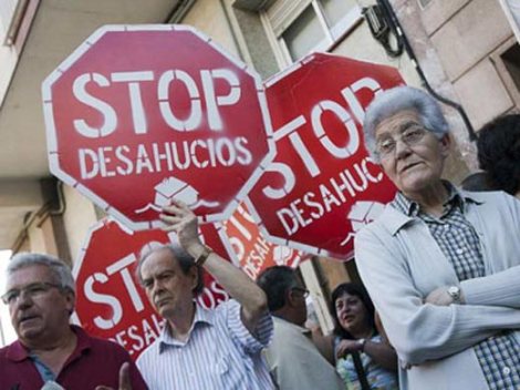 La plataforma informó que sólo en los primeros tres meses de 2012 se registraron 46.559 desahucios, debido a la falta de pago de hipotecas, que se ha incrementado producto del creciente desempleo en el país.
