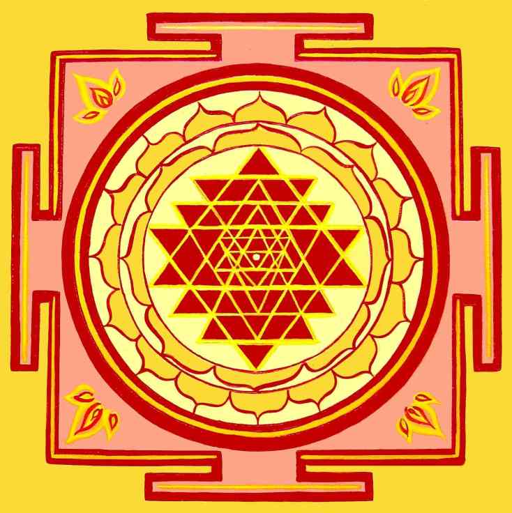 Se creé que las Yantras son los ideogramas naturales o verdaderos de los cuales se deriva la escritura. Son la base fundamental para simbolizar las formas sagradas, las imágenes, la arquitectura sagrada, los altares, templos y gestos rituales. Después de estar concentrado en una yantra durante varios minutos, notarás que las líneas dentro de ella parecen moverse. Esto no es simple fatiga de los ojos. En realidad estás aprendiendo a ver hacia otro plano de consciencia. Después de estar concentrado por 5 minutos, cierra tus ojos y escucha la quietud de la eternidad.
