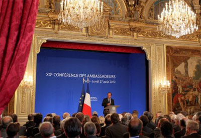 El nuevo presidente francés, Francois Hollande, presentó su visión de las relaciones internacionales y de la política exterior de su país ante la 20ª Conferencia de los Embajadores de Francia [1]. Fue un discurso muy esperado ya que Hollande nunca había abordado esos temas. Su experiencia se limita, en efecto, a la dirección del Partido Socialista y a los temas de política interna.
