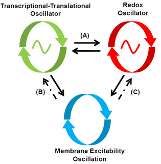 (Redox significa los cambios de energía del metabolismo celular (normalmente, a través de la transferencia de electrones). Cuando una molécula gana uno o más electrones, los científicos lo llaman reducción;. Cuando pierde electrones, lo llaman oxidación. Las reacciones redox, descubrieron los investigadores, oscilan sobre un ciclo de 24 horas del reloj cerebral, y abren o cierran los canales de comunicación de las células del cerebro).