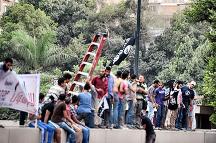 Los islamistas egipcios treparon a la embajada estadounidense en El Cairo y arrancaron su bandera