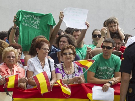 El curso escolar español se ha inaugurado entre abucheos debido a los recortes presupuestarios en el sector. Un grupo de profesores, padres y estudiantes ha silbado a los Príncipes de Asturias, al ministro de Educación José Ignacio Wert, y a la presidenta de Castilla-La Mancha, María Dolores de Cospedal, a su llegada al colegio Tomás Rojomaro de Fuensalida (Toledo).