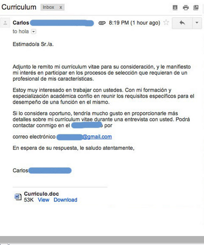 Carlos solo quería encontrar trabajo, como infinidad de españoles. Para ello, rastreaba el mercado buscando empresas que pudieran necesitarle enviándoles su Currículum Vítae a través de un email adjunto a una pequeña carta de presentación. Nada fuera de lo común, vamos. La sorpresa le llegó cuando una de estas compañías le contestó, aunque no fue precisamente para admitirle ni para rechazarle: fue para humillarle públicamente.