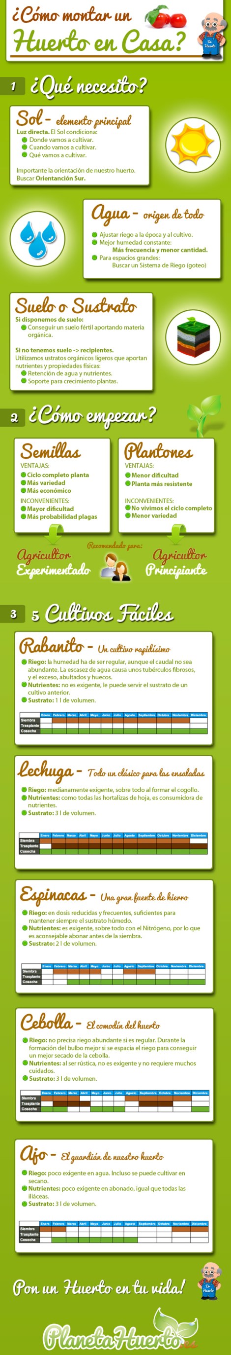 Desde Planeta Huerto nos llega esta didáctica y simpática infografía. Con ella nos animan a poner un huerto en casa y cultivar nuestros alimentos.