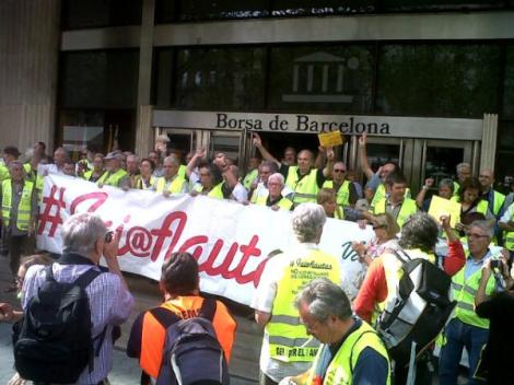 Un grupo de jubilados que lleva a cabo frecuentemente acciones de protesta contra los recortes (“yayoflautas”) ha ocupado esta mañana la Bolsa de Barcelona para manifestarse contra el inminente rescate que, aseguran, sólo beneficiará a la banca.