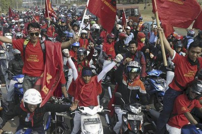 En la ciudad industrial de Bekasi, al este de Yakarta (sureste), aproximadamente 200 mil obreros se manifestaron, con banderas y gritos que decían “Trabajadores unidos, jamás serán vencidos”, por lo que alrededor de 15 mil policías fueron desplegados para salvaguardar la manifestación.