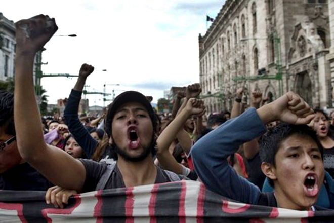 En otro acto similar y en conmemoración de los 44 años de la matanza de Tlatelolco, los integrantes de #Yosoy132 y otras organizaciones se congregaron el martes en la principal plaza de México para protestar contra la violencia generada por la estrategia estatal contra el narcotráfico y por una reforma laboral recientemente aprobada.