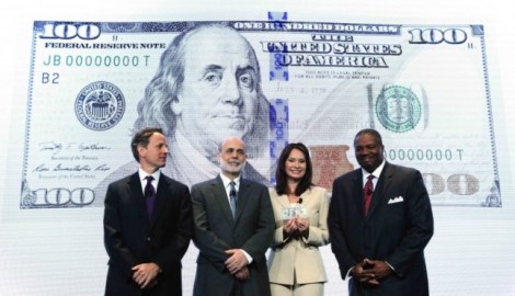 Los proyectos de ley que faltan tienen un diseño que no está programado para llegar a la circulación hasta 2013. Cuentan con una gran oro «100» gráfico en la espalda, y una caja de color naranja en la parte frontal con una imagen débil de la Campana de la Libertad. ![]()