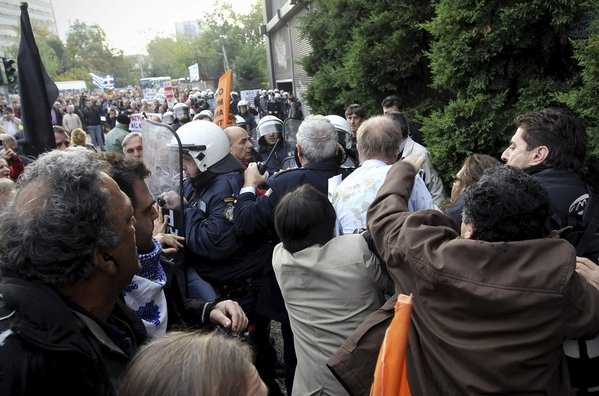 La policía antidisturbios tuvo que actuar para evitar que un grupo de empleados públicos boicoteara una conferencia entre delegaciones de Alemania y Grecia, lo que ocasionó altercados en la segunda mayor ciudad griega.