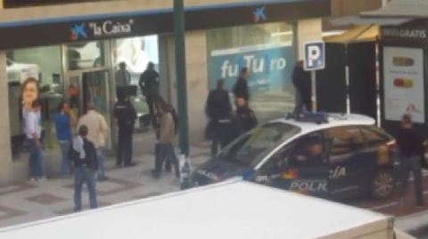 Lunes, dos de la tarde, en la calle Martínez Maldonado. Agentes de paisano y de uniforme comienzan a rodear una sucursal de La Caixa situada en el número 41. En la comisaría se ha recibido una llamada de un empleado del banco que alerta de un atraco. «Parecía el rodaje de una película», describe un padre que iba a por su hijo al colegio, «había un policía con una pistola en la mano detrás del quiosco, y tres o cuatro más colocándose los chalecos antibalas».
