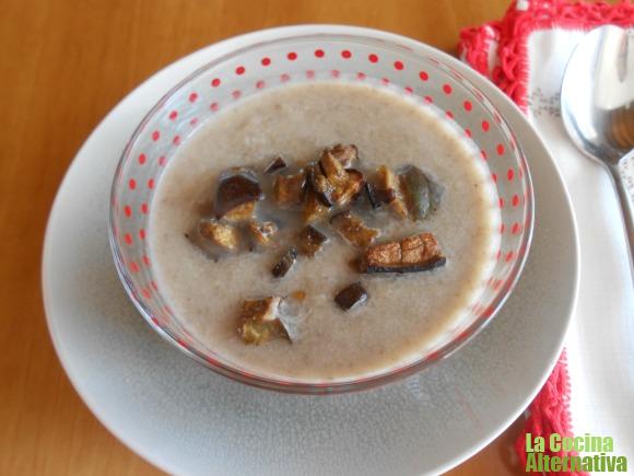 Pues nuestra crema de champiñones también es suave, cremosa y de sabor inconfundible y, además, es natural, muy fácil de hacer y como guarnición se acompaña de berenjenas asadas al curry que le aportan un toque sabroso y diferente.