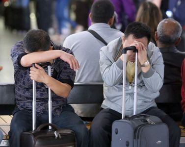 Flight passengers wait on September 4, 2012 at the airport in Frankfurt/M., western Germany. Cabin staff at German airline Lufthansa were staging fresh strikes at three main airports, causing major disruption with the cancellation of scores of flights. AFP PHOTO / FRANK RUMPENHORST GERMANY OUT