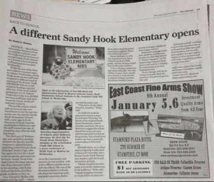 eeuuprensa Publicado 4 de enero de 2013 en 430 × 367 en EE.UU.: Publican un artículo de la masacre de Connecticut junto a un anuncio publicitario de armas