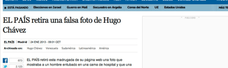 El diario español, ‘El País’, publicó en portada y en la web una supuesta fotografía del presidente de Venezuela, Hugo Chávez, convaleciente y entubado. En la foto se aprecia a […]