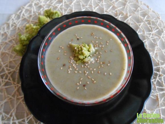 Bonito, fractal, anticancerígeno y sobre todo versátil y rico. Podemos disfrutar del romanesco en recetas de pasta, sencillamente al vapor, en guisos o en sopas como esta crema de romanesco, avena y cebolla roja.