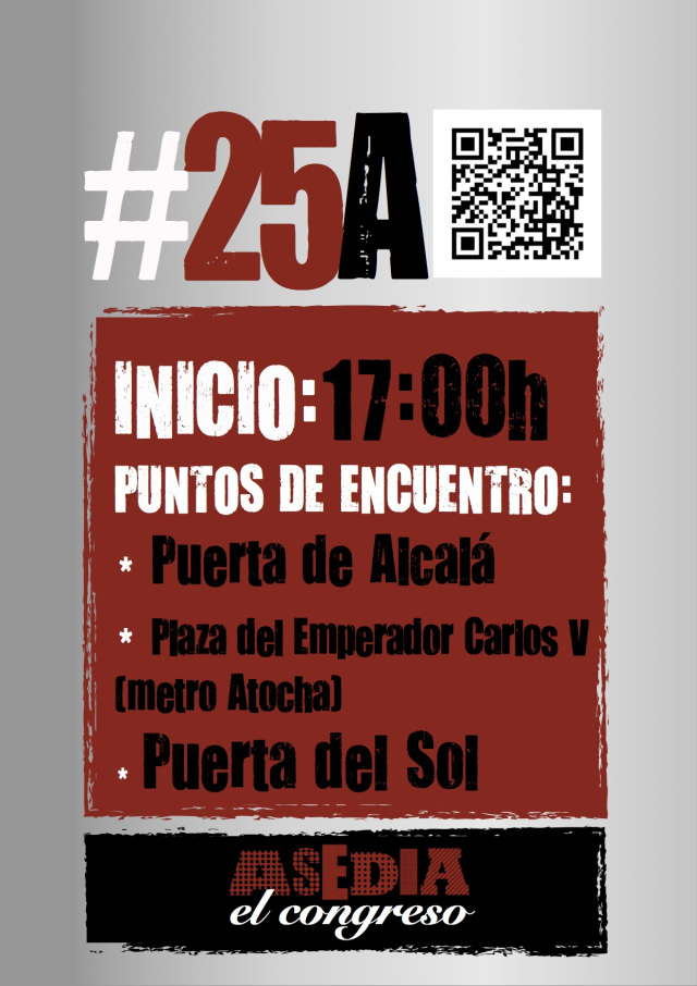 La convocatoria del 25 de Abril y la acción con la que apoyaremos, Escrache al Congreso, no tienen ni más ni menos que esa finalidad: la puesta en marcha de unproceso constituyente en el cual, y a partir del cual, la mayoría de la población pueda decidir con una verdadera participación democrática sobre el modelo político, económico, social, y de relaciones internas e internacionales, que le interese. Ni más, ni menos.