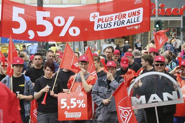 El sindicato exige un aumento salarial del 5,5 por ciento este año a 3,7 millones de trabajadores de la metalurgia, distribuidos en diferentes ramas, desde el automóvil hasta la electricidad.