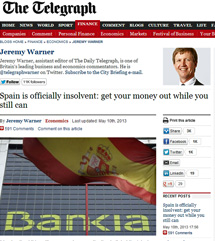 El artículo, escrito por su editor asociado Jeremy Warner en un blog de finanzas del diario, se basa en el informe del Fondo Monetario Internacional (FMI) publicado el pasado mes para concluir que la reestructuración de la deuda en España es «inevitable».