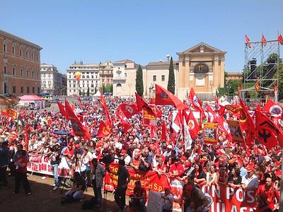 La manifestación, convocada por la Federación de Operarios Metalúrgicos (FIOM) y apoyada por otros sindicatos y varias fuerzas de la izquierda, partió de la plaza de la República hacia la plaza de San Juan de Letrán y durante el recorrido los participantes corearon lemas como “No podemos esperar más” o “Las fábricas bajo el control de los empleados”.