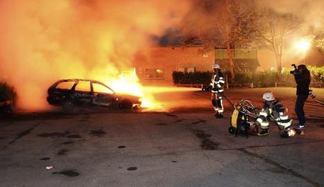 Cientos de jóvenes han incendiado coches y han atacado a la policía y miembros del servicio de rescate suecos por tercera noche consecutiva en varios suburbios con mayoría de población inmigranteen la capital sueca, según informa el portavoz de la policía de Estocolmo, Kjell Lindgren.