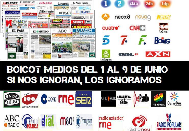 Han mentido en las actuaciones policiales. No se hacen eco de las movilizaciones, hablan sin haber estado presentes. Su insolidaridad es punzante: se detiene a dos periodistas no intoxicados y no los mencionan. Tertulianos, pesebreros, televisiones en manos de multinacionales que pagan a políticos, políticos que les conceden los caprichos…. Están ignorando y mintiendo a la ciudadanía. Su silencio ha hecho que se envalentonen políticos pusilánimes como el presidente del Congreso de los diputados, señor Posadas, que habla y grita con el tono que lo hizo Tejero al entrar pistola en mano en la Cámara…. Podéis aportar vuestra experiencia. Quienes nos metimos en todos los embolados tenemos para escribir un libro sobre las actuaciones anómalas y que han pasado desapercibidas por los medios convencionales. UNA SEMANA IGNORÁNDOLOS Y NOS RECLAMARÁN…PUEDE QUE SEA TARDE.