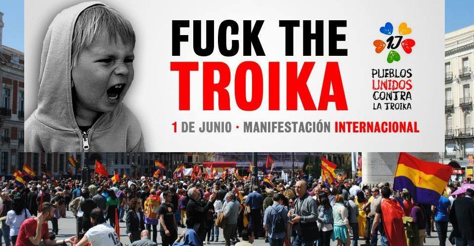 En Europa, diversos colectivos procedentes del Estado Español, Francia, Italia, Grecia, Chipre, Irlanda, Inglaterra, Escocia, Alemania y Eslovenia reunidos en Lisboa el pasado 26 de abril invitados por el movimiento portugués ’Que se Lixe a Troika’ hacemos un llamamiento a una protesta internacional descentralizada el próximo 1 de Junio contra las políticas de ajuste del déficit bajo el lema “Pueblos Unidos contra la troika”.