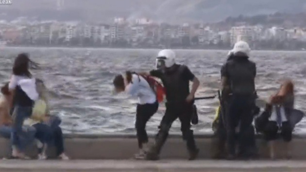 Según el comentario que acompaña el video, las bofetadas, rodillazos y porrazos que les dieron los policías se debieron a que una de los jóvenes llevaba una banderita turca pegada a su bolsa, que podría indicar su solidaridad con las manifestaciones que han envuelto al país en los últimos días.