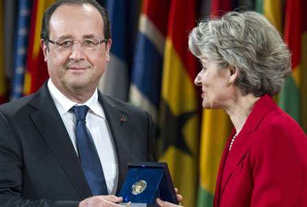 De esta forma, Hollande recibió el miércoles el premio principal de la Organización de las Naciones Unidas para la Educación, la Ciencia y la Cultura (Unesco), durante una ceremonia celebrada en París, capital de Francia.