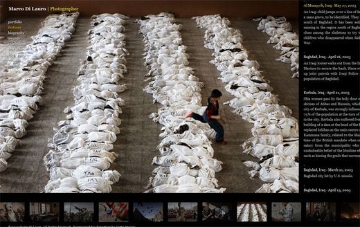 En realidad la imagen fue captada por el fotógrafo italiano Marco Di Lauro en Irak hace 10 años, el 23 de mayo de 2003. La instantánea es de un grupo de cadáveres que fueron encontrados en Al Musayyib y fueron trasladados a un colegio de Bagdad, donde un niño salta sobre los cuerpos envueltos en telas blancas.