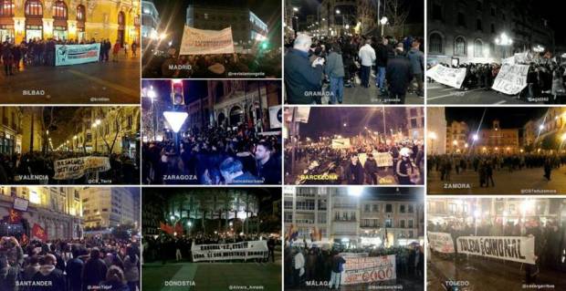 Este viernes se han sucedido concentraciones y manifestaciones de apoyo en ciudades, como Barcelona, Madrid, Bilbao, Vitoria, San Sebastián, Valencia, Zamora, Vigo, Alicante, Toledo, Ciudad Real, etc.