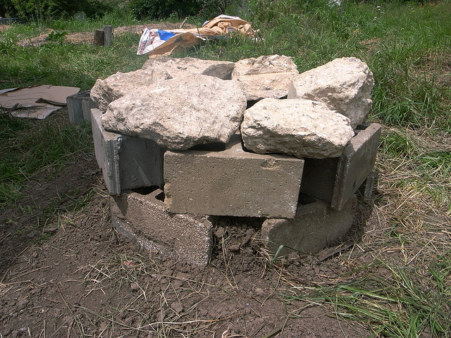 Con nada más que un poco de arcilla, arena, ladrillo, paja, algunas botellas de vidrio para re-utilizar y viejos bloques de cemento, es todo lo que necesitas para hacer tu propio horno. Puedes empezar a construir los cimientos de tu horno a partir de bloques de cemento usados y unos trozos de piedra. (Un hogar de 40 «de la tierra es una buena altura media para trabajar).
